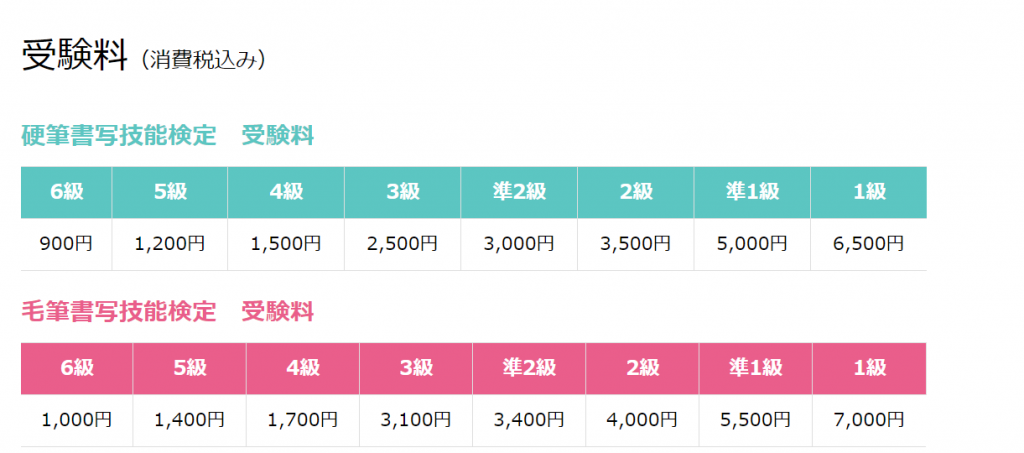 指導者レベルである1級ですら、硬筆6,500円・毛筆7,000円って滅茶苦茶破格です。