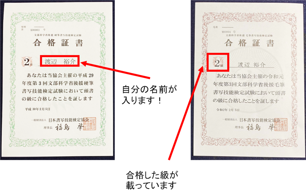 当教室に通っていただいている生徒さんの、硬筆・毛筆書写技能検定の結果がでました。